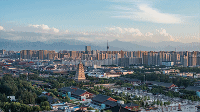 △步行街以大雁塔为依托,北起玄奘广场、南至唐城墙遗址公园、东起慈恩东路、西至慈恩西路,南北长2100米,东西长500米。(总台央视记者杨波拍摄)
