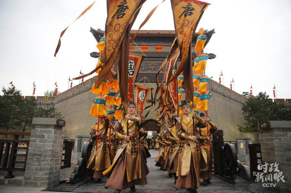△2015年5月14日,古城楼永宁门外,盛唐武士和宫女正在列队迎宾。