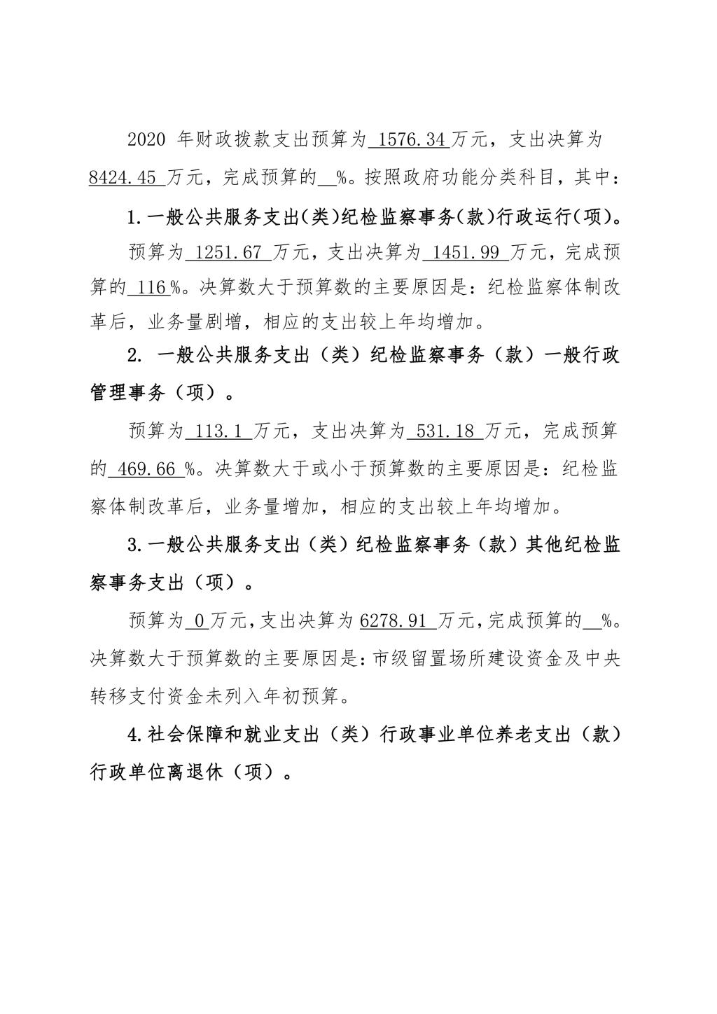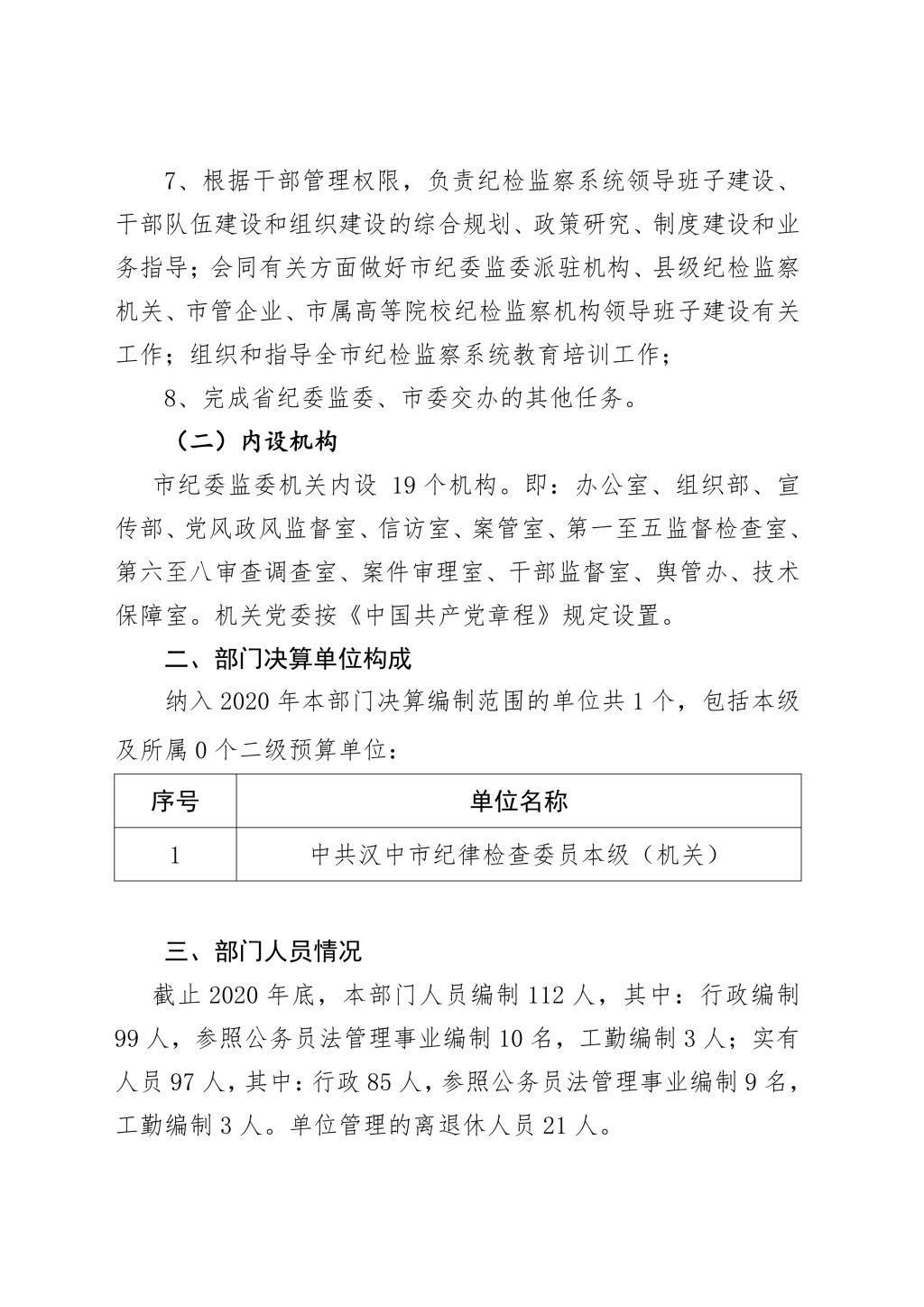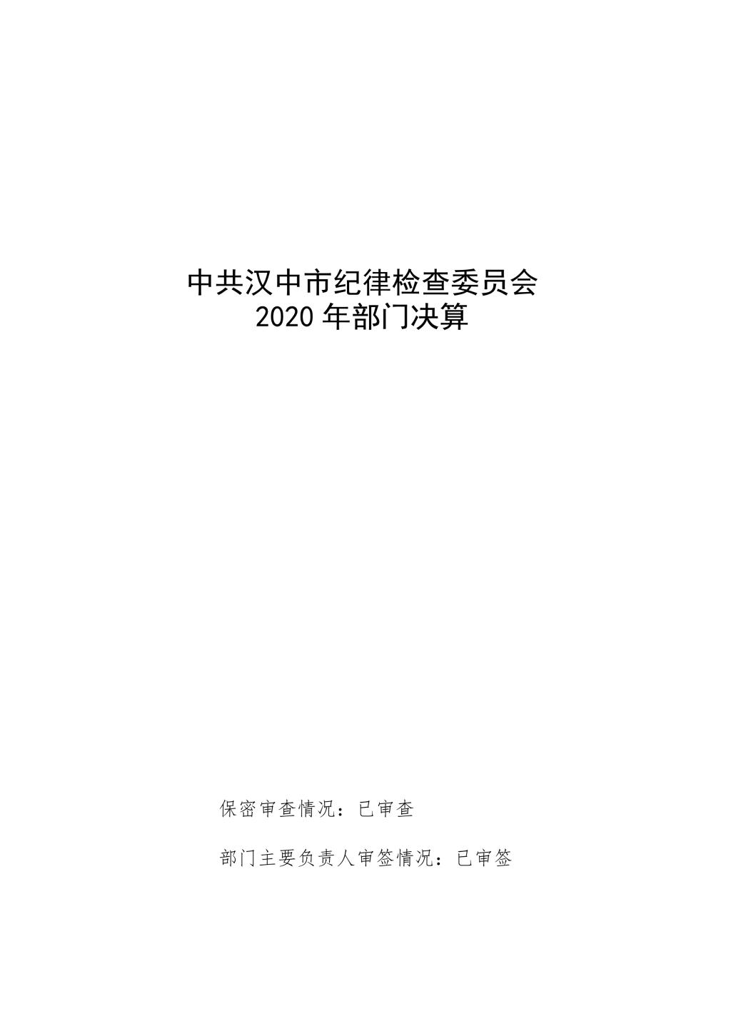 中共汉中市纪律检查委员会2020年部门决算公开说明