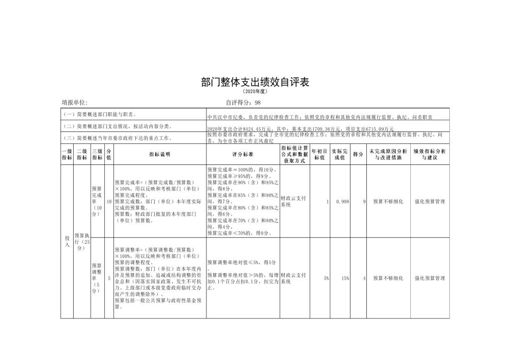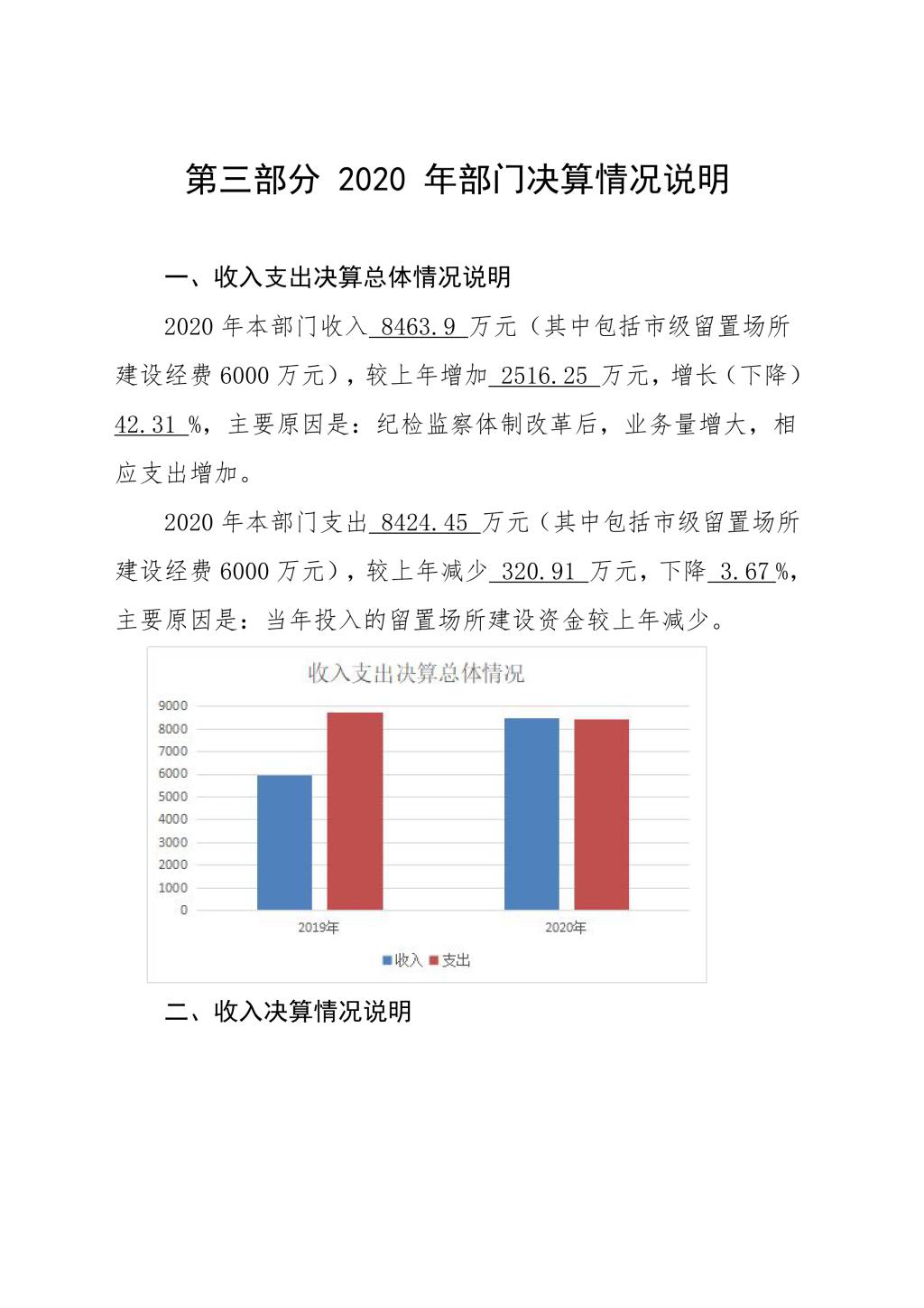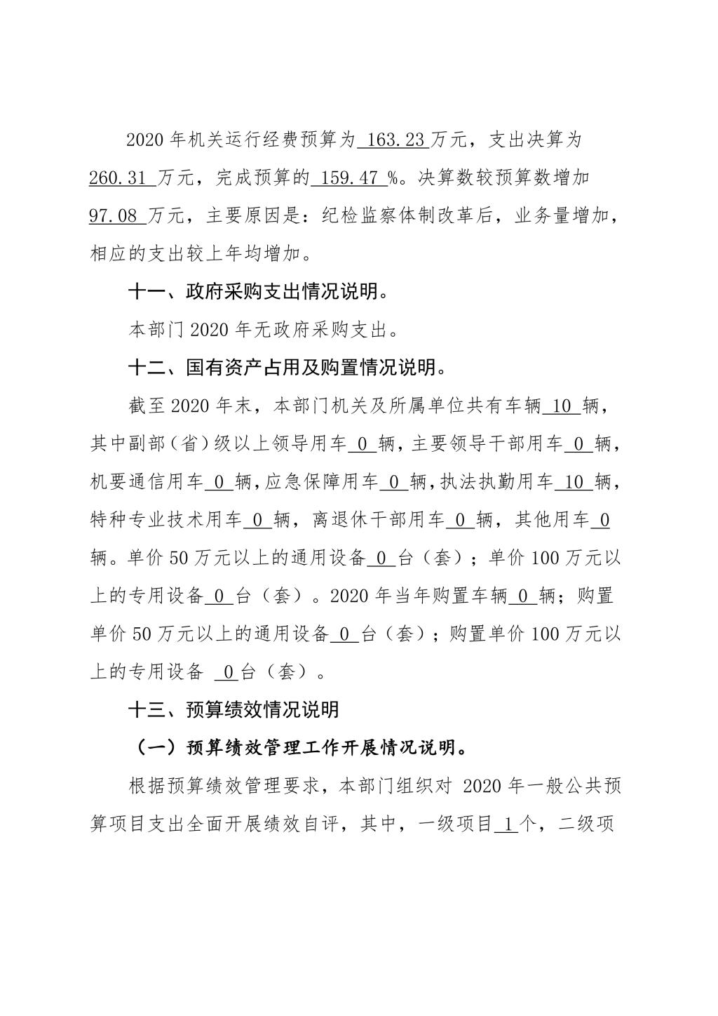 中共汉中市纪律检查委员会2020年部门决算公开说明